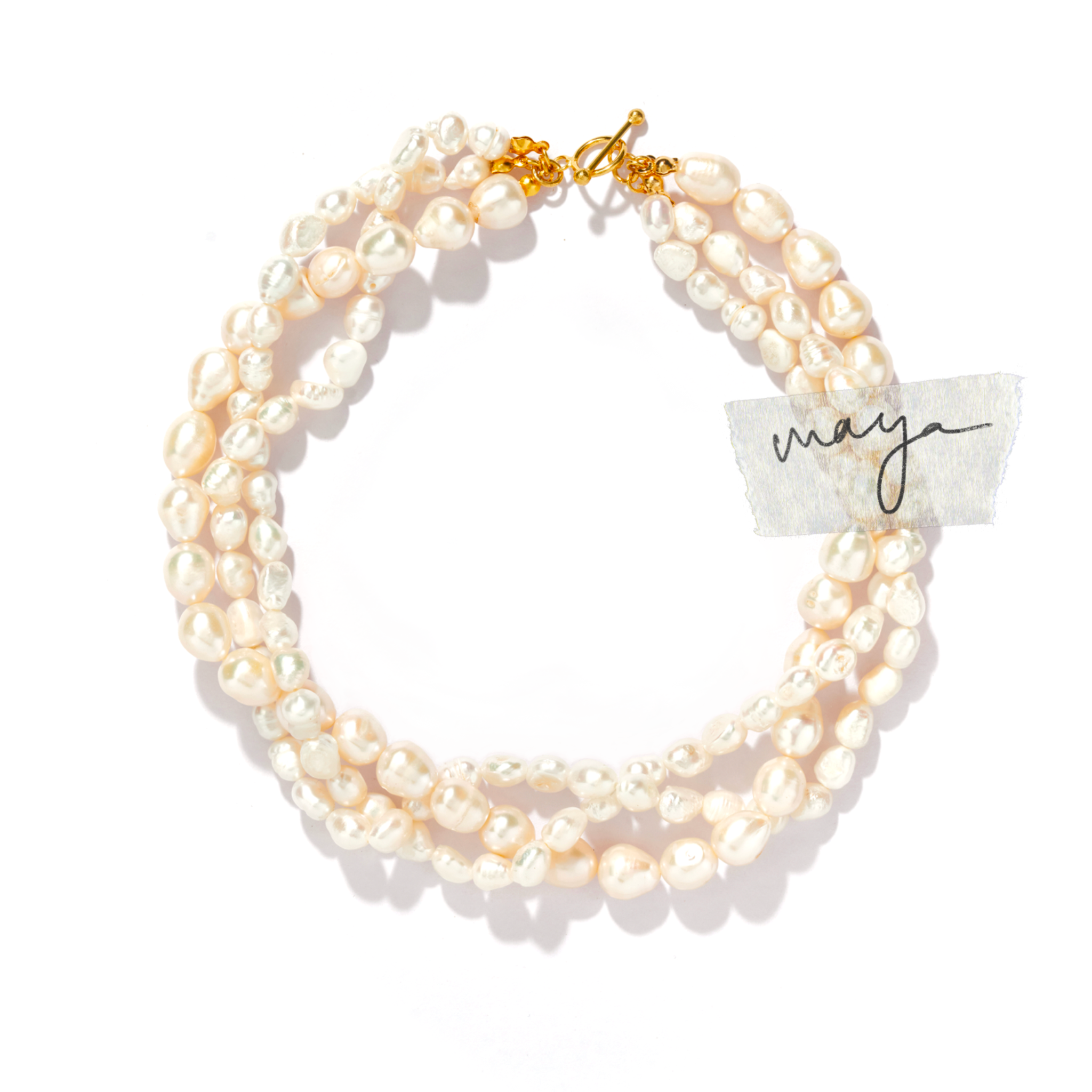 The Maya Necklace is our ode to pearls, organic forms shaped by nature’s forces, each one distinct and imperfectly beautiful. Three strands of bold, baroque freshwater pearls, in all shapes and sizes, are braided to make this lush, handcrafted choker. Your passport to a coastal state of mind, whether paired with sundrenched linens or evening silks, Maya always makes a statement.